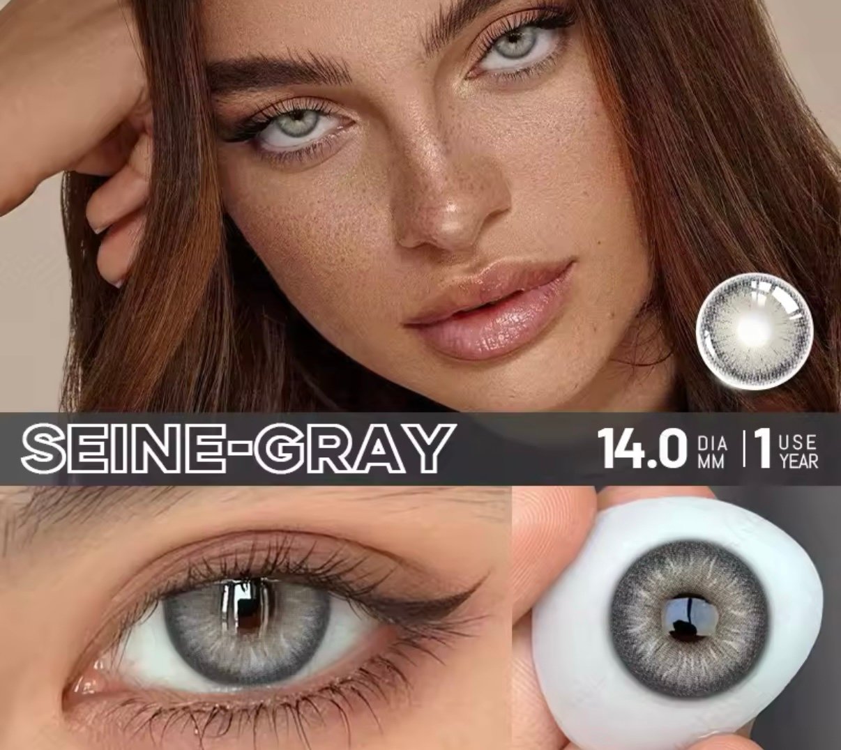 Safe, natural-looking contact lenses Color: Seine Gray , DIA:14.0 , BC: 8.5mm , Water 40%.