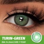 Safe, natural-looking contact lenses Color: Turin Green , DIA:14.2mm , BC: 8.5mm , Water 40%.